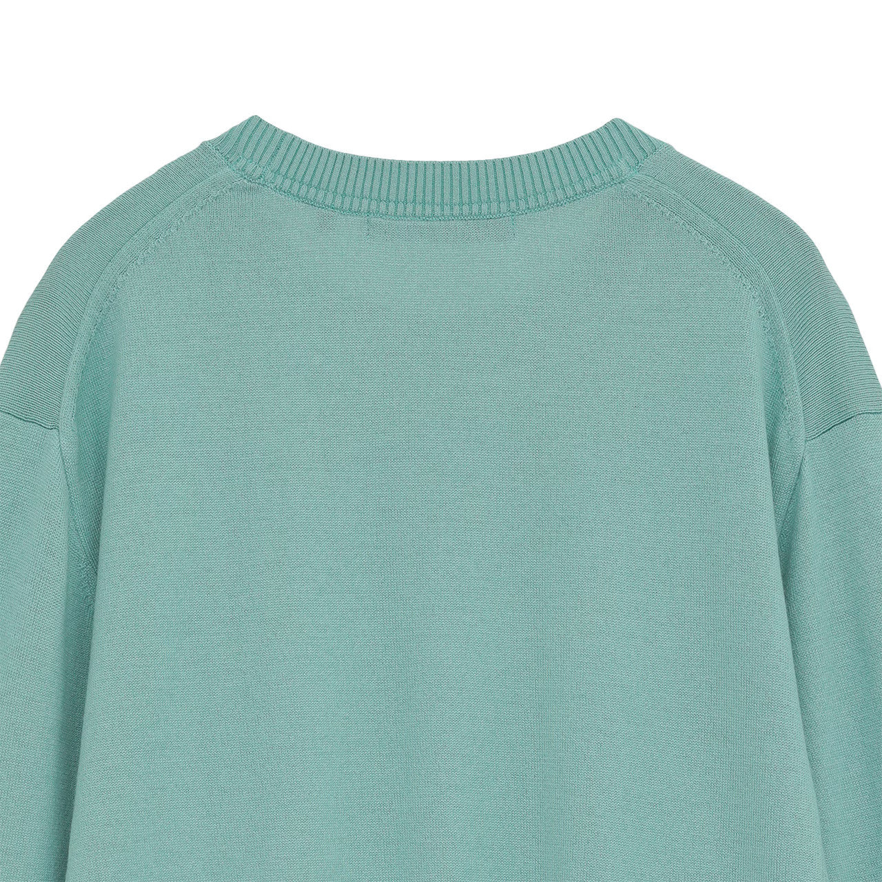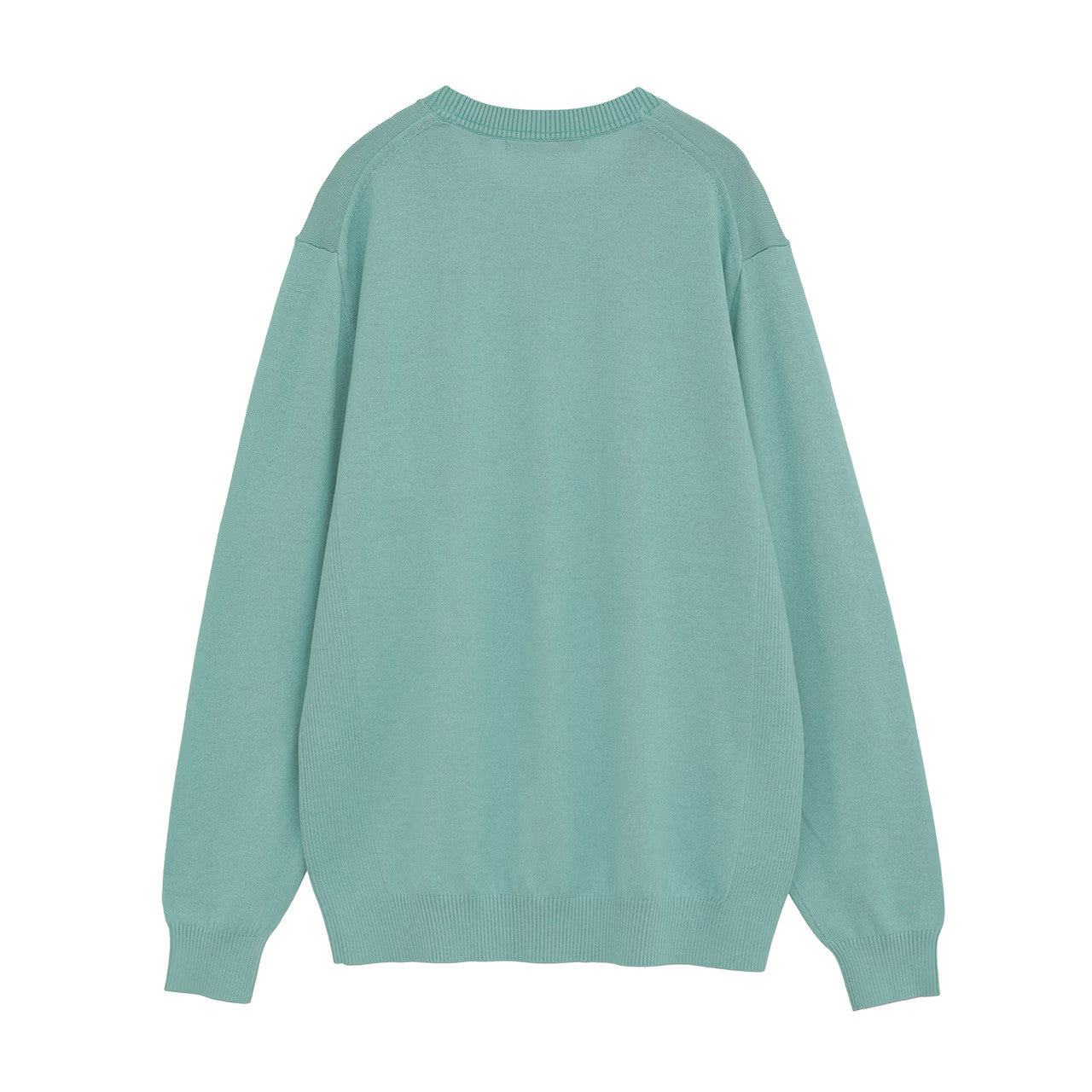 クルーネックのリラクシーなフォルムでタウンユースにも合わせやすいデザイン。フロントには配色ロゴをプラスし、編地で表現したガゼットがスウェットライクなアクセント。脇下にもリブポイントを設けることでカジュアル過ぎずシャープなフォルムを演出します。